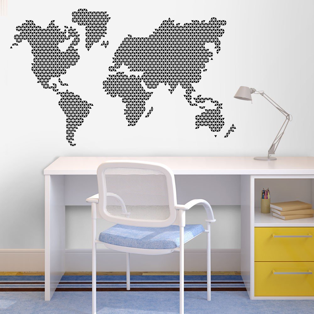 Este modelo, Adesivo de Parede Mapa Triangles, pode ser usado em praticamente qualquer superfície lisa, pode ser utilizado para decorar quarto infantil, sala, sala de estar, sala de tv, cozinha, hall de entrada, quarto de casal, bar, espaço gourmet, cabeceira de cama, escritório, banheiro, box de banheiro, etc...