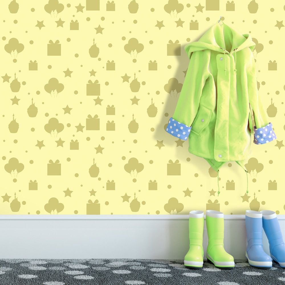 O Papel de Parede Festa Amarela é fabricado em adesivo vinil fosco 3M, autocolante e com excelente qualidade de impressão. Não precisando de cola.