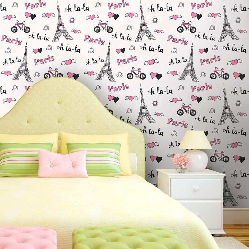 O Papel de Parede Paris Oh La La é fabricado em adesivo vinil fosco 3M, autocolante e com excelente qualidade de impressão. Não precisando de cola.