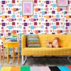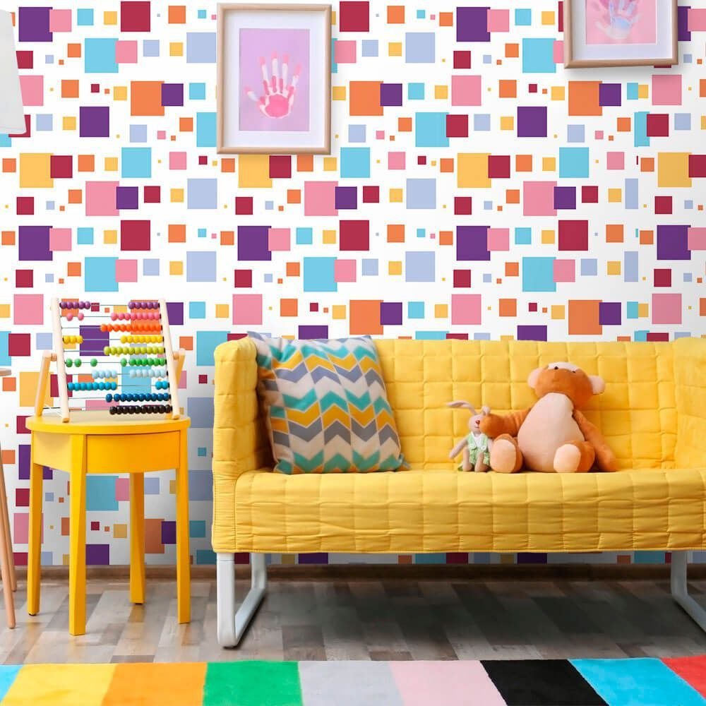 O Papel de Parede Quadrados Coloridos é fabricado em adesivo vinil fosco 3M, autocolante e com excelente qualidade de impressão. Não precisando de cola.