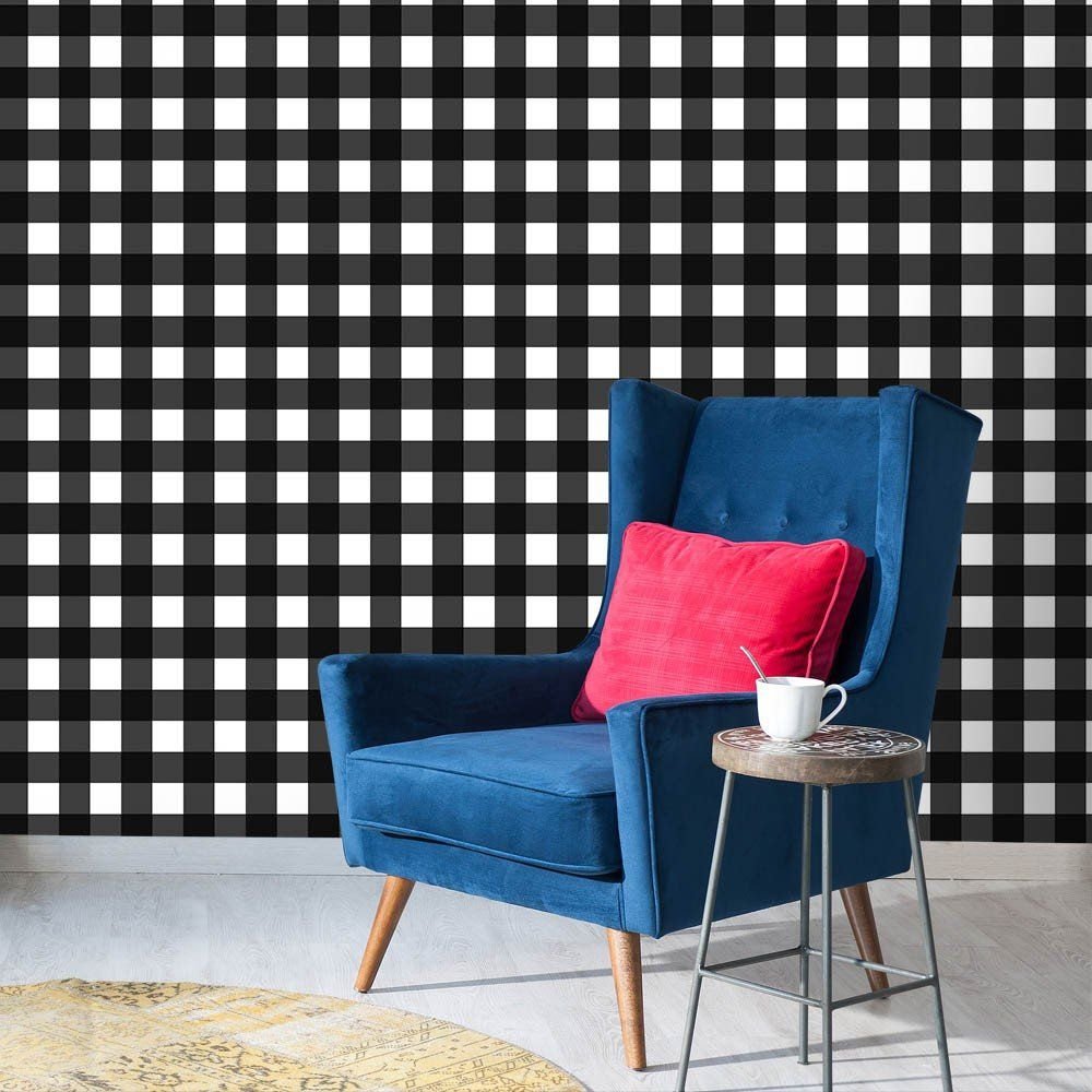 O Papel de Parede Xadrez Preto e Branco é fabricado em adesivo vinil fosco 3M, autocolante e com excelente qualidade de impressão. Não precisando de cola.